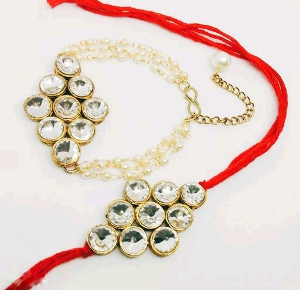 | Beautiful Thread & Kundan Couple Rakhi Rakhi For Bhaiya and bhabhi