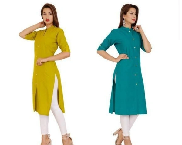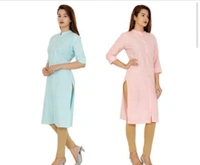 |Women's Solid Cotton Kurti| |Fabric: Pure Cotton| |Sleeve Length: Three-Quarter Sleeves| |Pattern: Solid| |Combo of: Combo of 2| |Sizes: XL (Bust Size: 42 in Size Length: 42 in) L (Bust Size: 40 in Size Length: 42 in) M (Bust Size: 38 in Size Length: 42 in) XXL (Bust Size: 44 in Size Length: 42 in)| |Country of Origin: India|